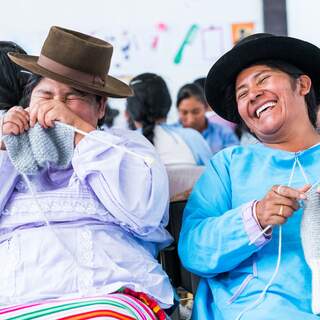 In het Manta handwerkatelier in Peru werden reeds 900 breisters tewerkgesteld en meer dan 150.000 stuks gebreid. De (kans)arme vrouwen breien mutsen, dekens en sjaals zoals die van onze Ayacucho-collectie. Dit inkomen helpt hen sterk op weg naar een beter bestaan.