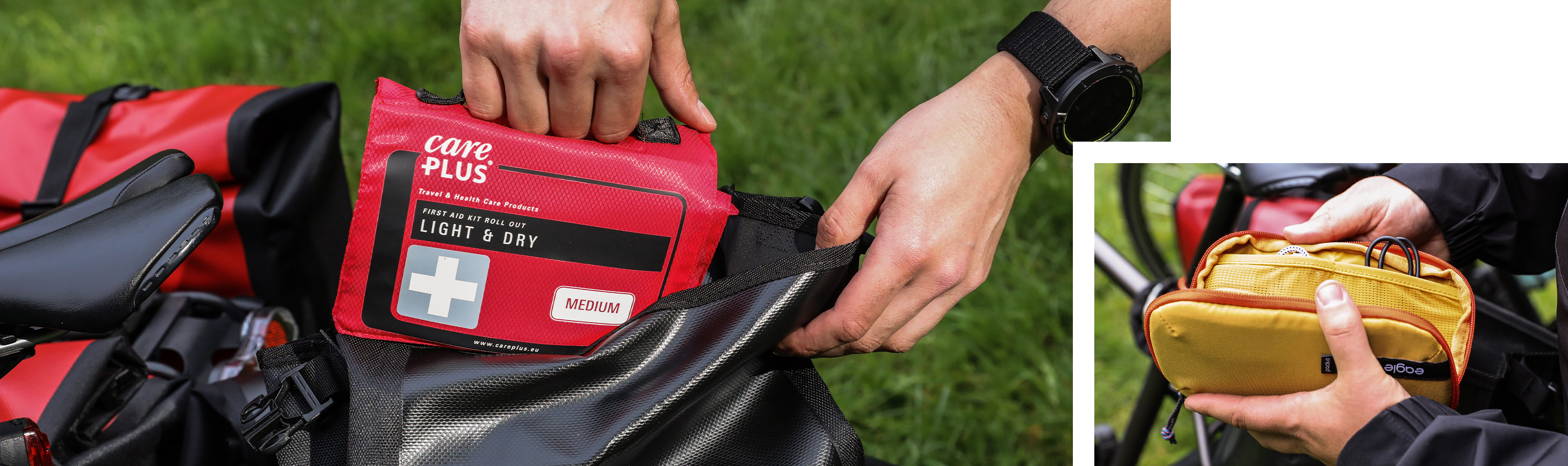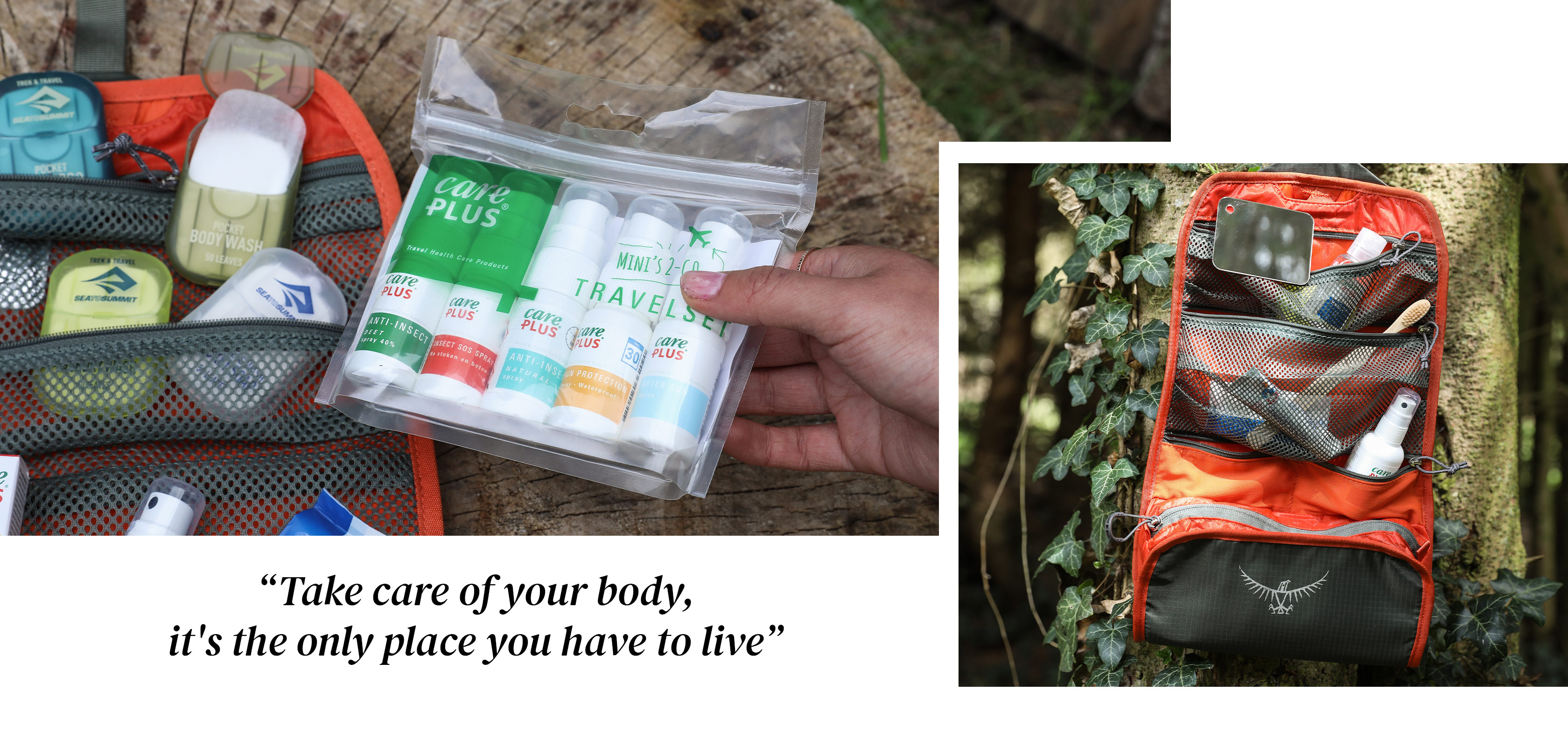 Buiten leven is gezond, maar er zijn ook een paar aandachtspuntjes. Zo ben je als kampeerder meer blootgesteld aan de schadelijke uv-stralen van de zon én een makkelijke prooi voor stekende en bijtende insecten. Een goede zonnecrème, een zonnebril en een insectenwerend middel zijn dus onmisbaar. Voor je persoonlijke hygiëne doet een reishanddoekje en een biologisch afbreekbare zeep al veel. En voor wie in een afgelegen streek gaat kamperen, kan een uitgebreide EHBO-kit met de nodige medicatie, pleisters en ontsmettingsmiddelen van pas komen.