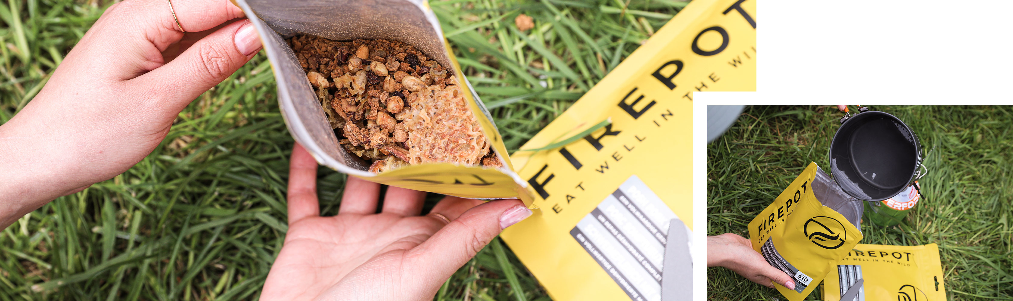 Tijdens een meerdaagse trekking kan je het je niet permitteren om veel kookmateriaal mee te dragen. Beperk je daarom tot een rooster, dat tal van mogelijkheden biedt om groenten en vlees te bereiden: rechtstreeks op de grill of in een kookpotje dat je erop zet. Aluminiumfolie is ideaal om gerechten in te verpakken en ze langzaam te laten smeulen aan de rand van je vuur – al is dit natuurlijk niet zo’n milieuvriendelijke methode. Een bord of gamel uit roestvrij staal is een duurzaam alternatief dat je probleemloos in de gloeiende kolen kan zetten. Ben je van plan enkel gevriesdroogde maaltijden te bereiden? Dan volstaat een waterketel om enkel water te koken.