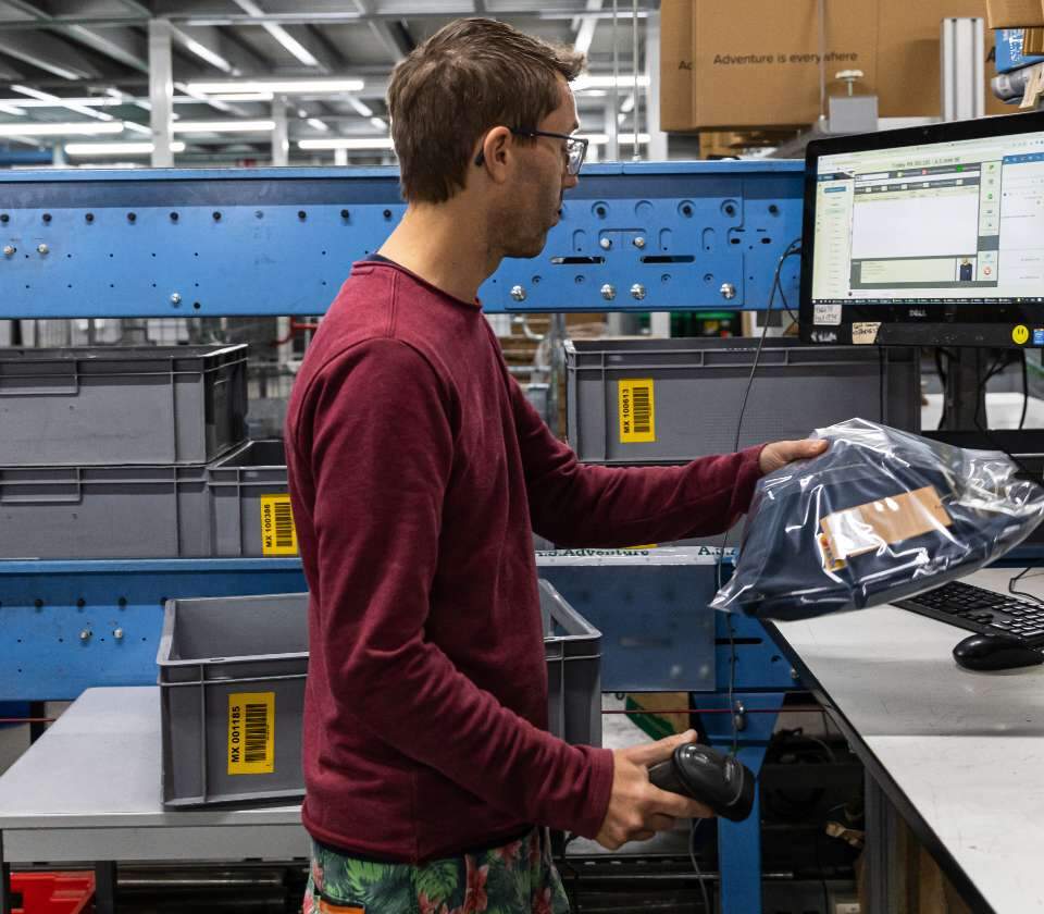 “Als supervisor in het warehouse ben ik ook verantwoordelijk voor de bestellingen uit onze webshop. Web is onderverdeeld in 3 compartimenten: quality control, direct sales en dispatch. Die drie plekken zijn verbonden door een lopende band. Bestel je iets online voor 22u bij A.S.Adventure dan wordt dat de volgende dag geleverd. Onze medewerkers maken dat mogelijk. Een online bestelling wordt uitgezocht door onze orderpickers en naar kwaliteitscontrole gebracht. Bestaat een bestelling uit 1 product, dan gaat het van kwaliteitscontrole rechtstreeks naar dispatch om ingepakt en verstuurd te worden. Zijn er verschillende producten, dan passeert de bestelling eerst bij direct sales. Alle producten waaruit een bestelling bestaat worden daar verzameld, om samen ingepakt te worden bij dispatch.”