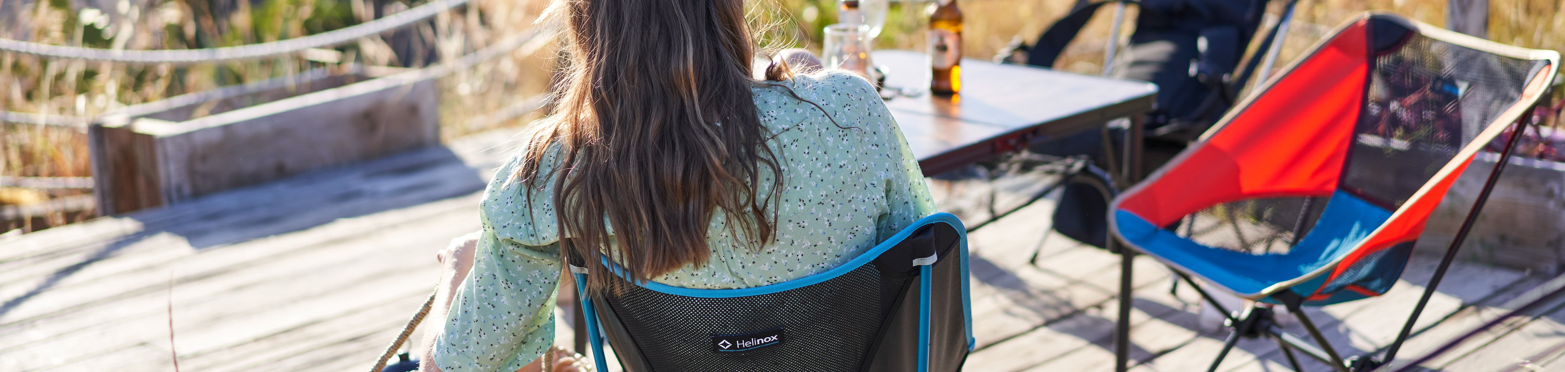 TIP: Het merk Helinox is gespecialiseerd in kampeermeubelen, die even stevig, lichtgewicht, compact op te vouwen als comfortabel zijn. Door hun extreem lage gewicht kan je ze makkelijk meenemen in je (dag)rugzak.