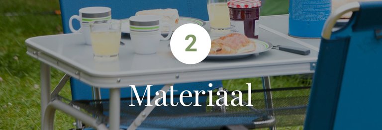Bij je keuze van een kampeertafel kan het materiaal een rol spelen, wat betreft gewicht, onderhoud en stevigheid.