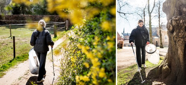 Vandaag mogen wij mee. De tocht begint aan de kerk. Lauren stapt de statige dreef naar het kasteel van Vorselaar in. Er zijn lelijkere routes om proper te houden, denken wij dan. “Klopt, dit is echt een mooi stukje Vorselaar. Het is dan ook de moeite om het netjes te houden. Normaal doen mijn vriendin en ik elk één kant. Zo wandelen we een lus van ongeveer 7 kilometer. Het is ons therapeutisch momentje. We babbelen wat bij en doen ondertussen iets nuttigs. Goed voor lichaam en geest.”