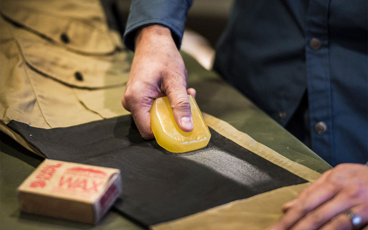 Met een simpel, maar geniaal blokje wax maak jij je Fjällräven-outfit uit G-1000-stof regenbestendig en winddicht.