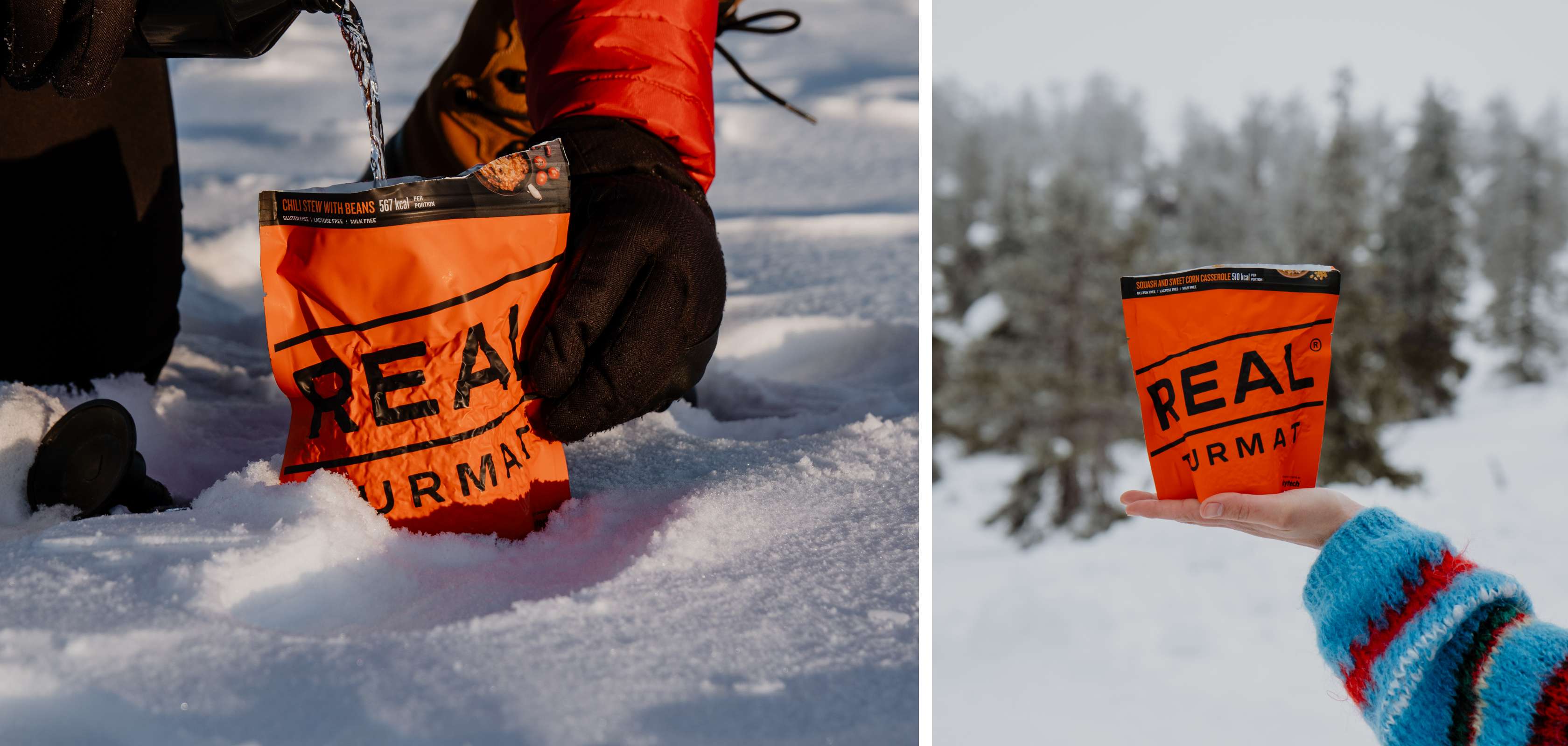 Tijdens een reis van een week door Fins Lapland testte ze de gevriesdroogde maaltijden van Real Turmat: “Ik at ze op de top van een heuvel tijdens een snowshoe hike of in een Kota (Finse hut) tijdens het langlaufen of fatbiken”, vertelt ze. “Van zo’n activiteiten in de buitenlucht krijg je honger, en bij temperaturen tot min 22 graden doet zo’n warme maaltijd zoveel deugd!”