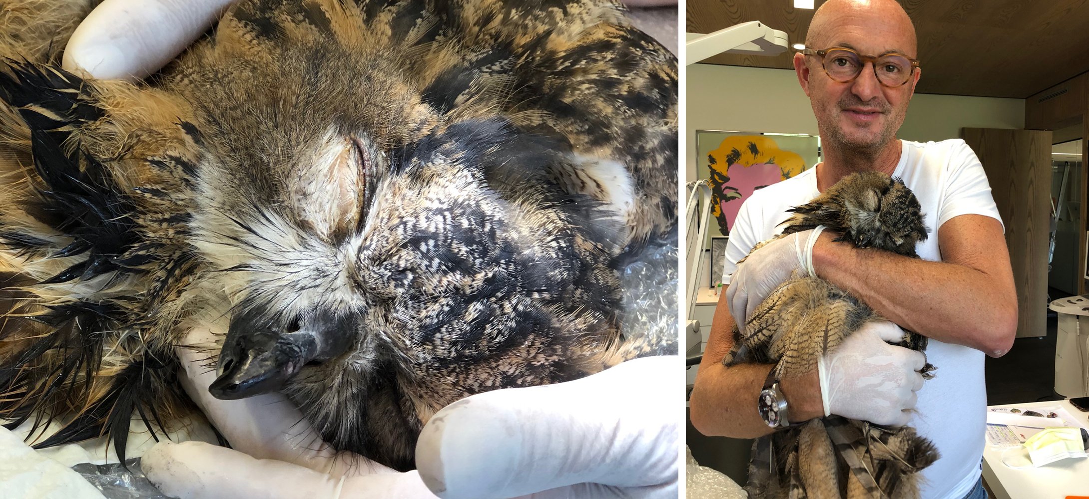 Er kwam ook een dierenarts langs, om de oehoe onder narcose te brengen. “Pas op, het was niet simpel om zo’n dier in slaap te krijgen. Zelfs een dierenarts heeft daar amper ervaring mee. Hij heeft tijdens de behandeling een paar keer extra verdoving moeten toedienen.”