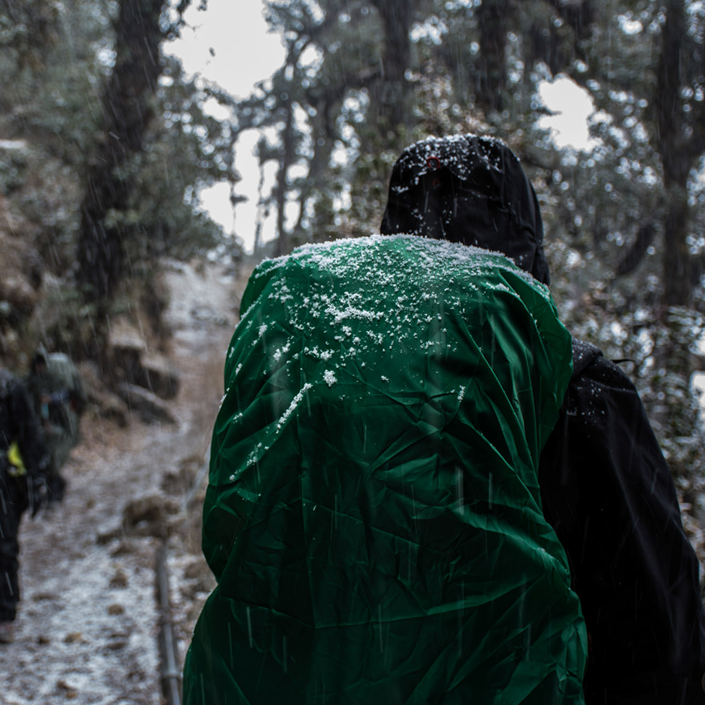 • Voor natte wandelingen is een 2-laagse jas voldoende. Een losse beschermingsvoering of netje wordt in de jas genaaid, zodat hij soepel en ademend blijft.