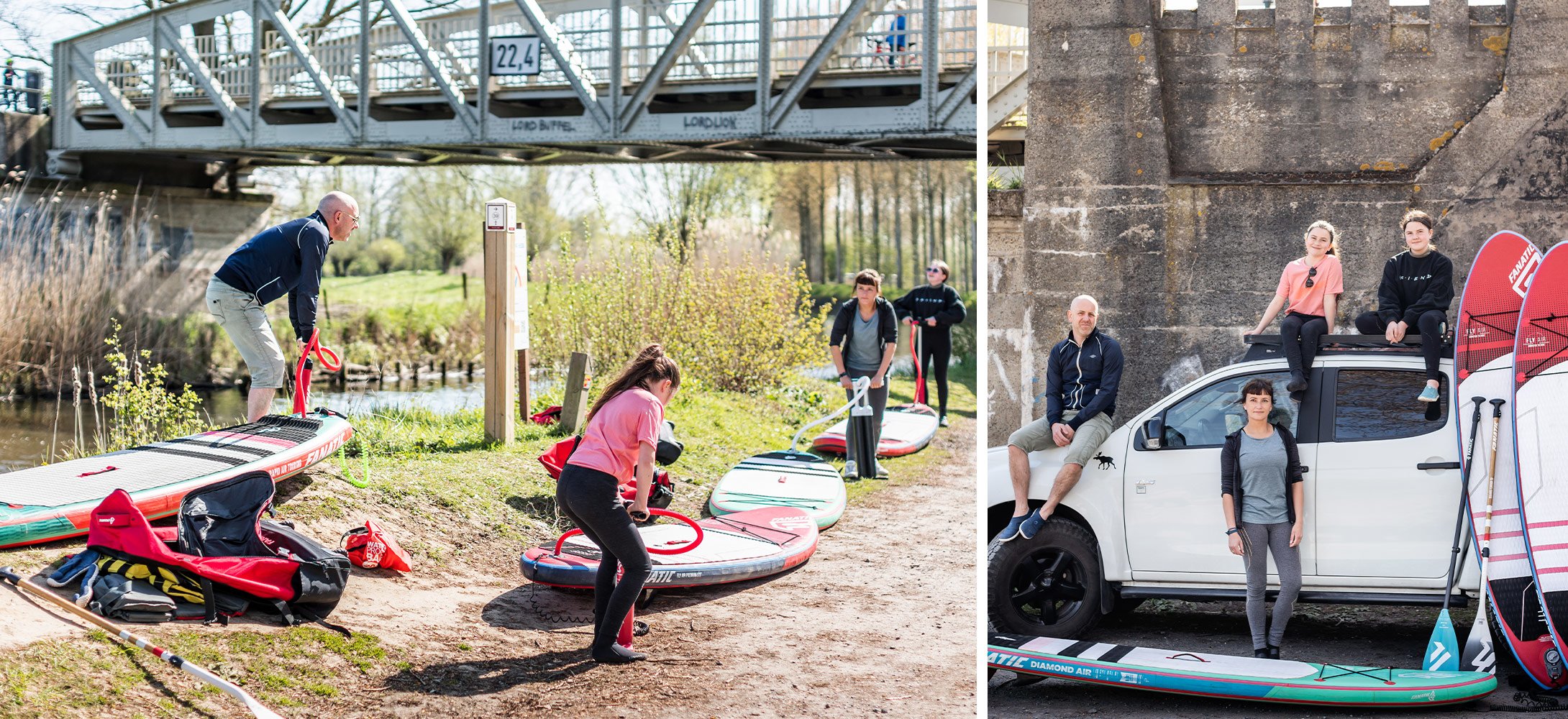 Een zonnige namiddag aan de waterkant in Lokeren. De fotograaf kan zijn geluk niet op. Het licht, het onderwerp van de reportage: alles zit mee. De stralende gezichten van de vier leden van het gezin Van de Merckt krijgt hij er gratis bovenop. Met een glimlach tot achter hun oren stappen zij uit hun 4x4. En daar is een goeie reden voor. “We hebben nog eens de tijd gevonden om met het hele gezin te gaan suppen”, zegt Sieglinde. “Met tienerdochters is dat niet altijd evident.”