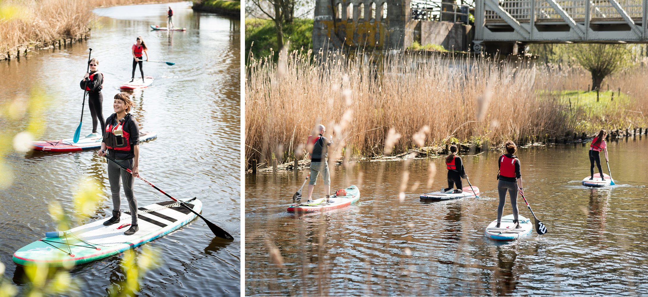 Sieglinde lacht. “Ja, toen hadden we achteraf pijn aan onze armen. Eigenlijk kan je het zo vermoeiend maken als je zelf wil. Er zijn zelfs mensen die deelnemen aan supraces. Voor mij is suppen vooral een manier om te ontladen in de natuur.”