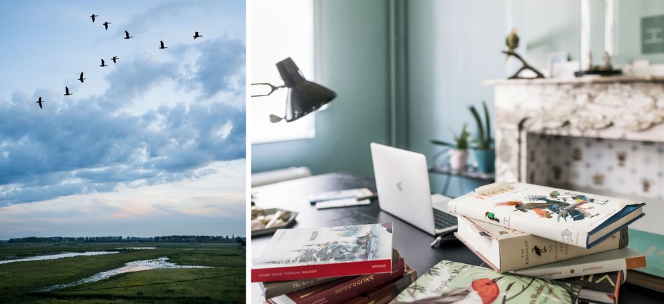 Dat is het toffe aan vogelspotten, bedenkt ze, dat je meedeint op het ritme van de jaargetijden. “Het klinkt melig, maar in het leven onderga je ook seizoenen. We denken vaak dat we van a naar b moeten, maar het leven is bijlange niet zo lineair. Het gaat op en neer. Na de winter komt de lente.” Dat is lang niet de enige inspiratie die Agnes opdoet in het groen. Ze trekt er graag alleen op uit, mediterend, contemplerend over kleine en grote levenskwesties. Of broedend op een creatief idee.